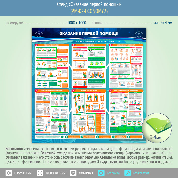 Стенд «Оказание первой помощи» (PM-02-ECONOMY2) в Краснодаре купить