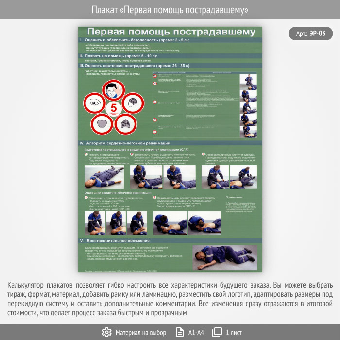 Плакат «Первая помощь пострадавшему» (ЭР-03, 1 лист)