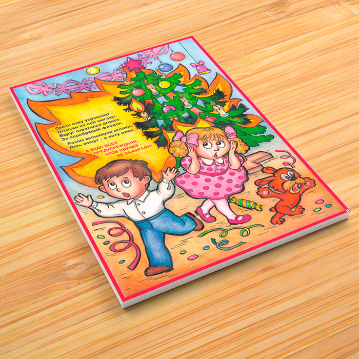 Комплект плакатов «Детям о правилах пожарной безопасности» из 10 листов поведает в стихах и красочных иллюстрациях о десяти основных правилах, которые дети должны знать о пожарной безопасности