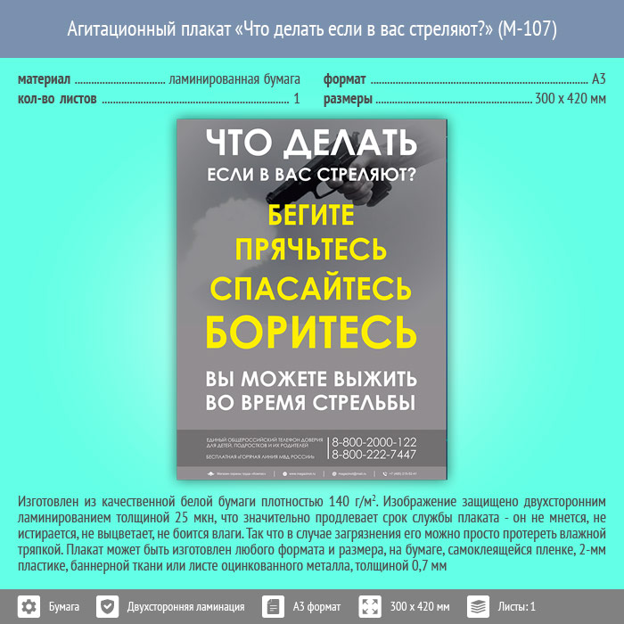 Плакат «Что делать если в вас стреляют?» (М-107, ламинированная бумага, А3, 1 лист) в Краснодаре купить