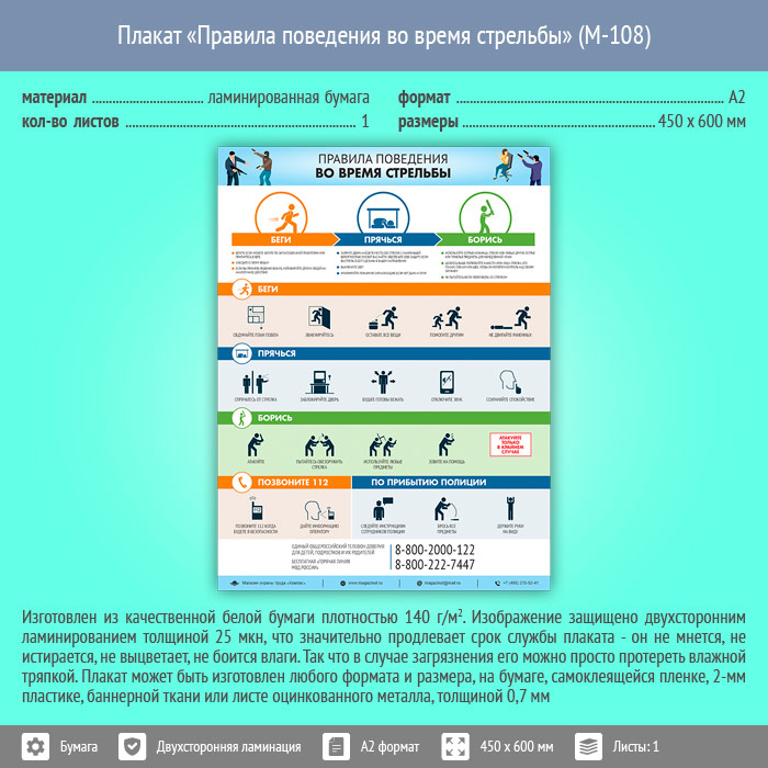 Плакат «Правила поведения во время стрельбы» (М-108, ламинированная бумага, А2, 1 лист) в Краснодаре купить