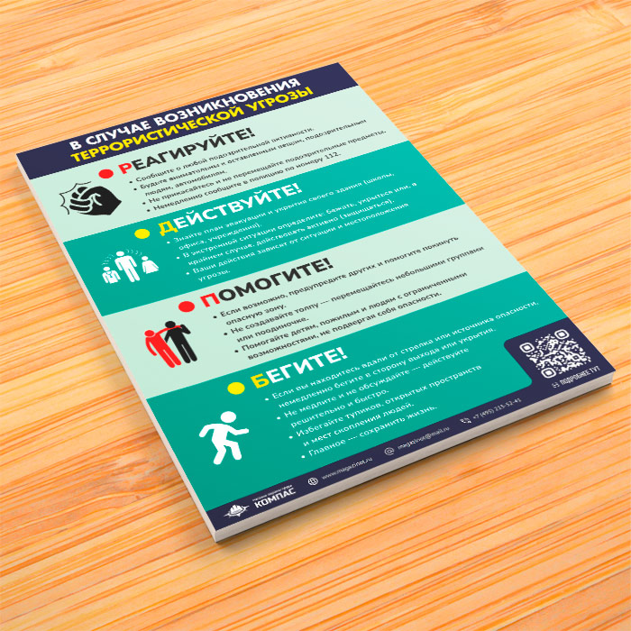 Плакат «В случае возникновения террористической угрозы» (М-109, ламинированная бумага, А3, 1 лист) в Краснодаре купить