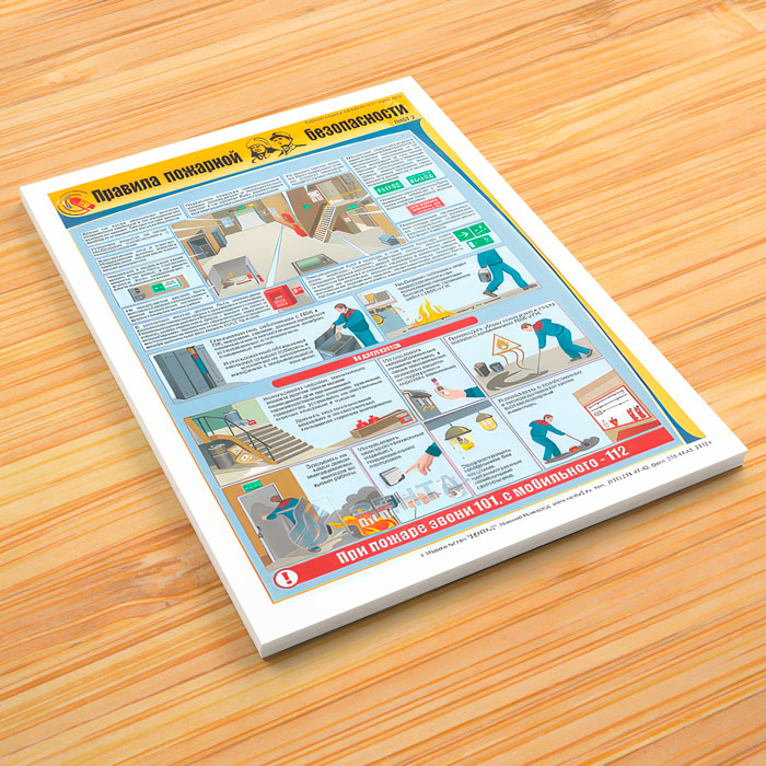 В комплекте плакатов из 3 листов «Правила пожарной безопасности» описываются основные правила пожарной безопасности на предприятии, размещение средств пожаротушения, правила содержания эвакуационных выходов и пожарных проездов, правила проведения пожароопасных работ, условия хранения легкогорючих веществ и баллонов с газом