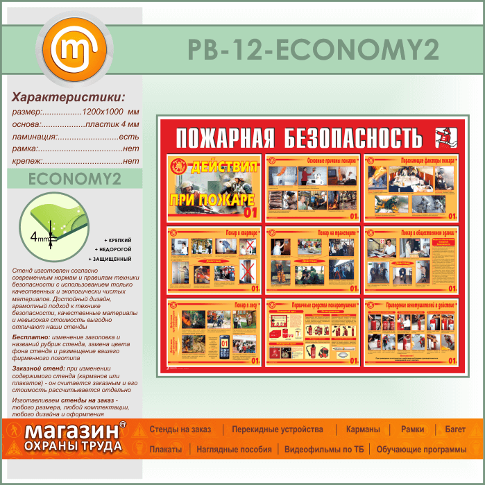 Стенд «Пожарная безопасность. Действия при пожаре» (PB-12-ECONOMY2) в Краснодаре купить