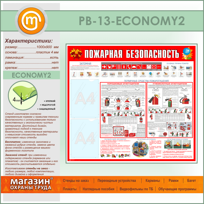 Стенд «Пожарная безопасность» с 2 карманами (PB-13-ECONOMY2) в Краснодаре купить