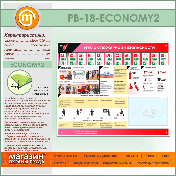 Стенд «Уголок пожарной безопасности» с карманом А3 формата (PB-18-ECONOMY2) в Краснодаре купить