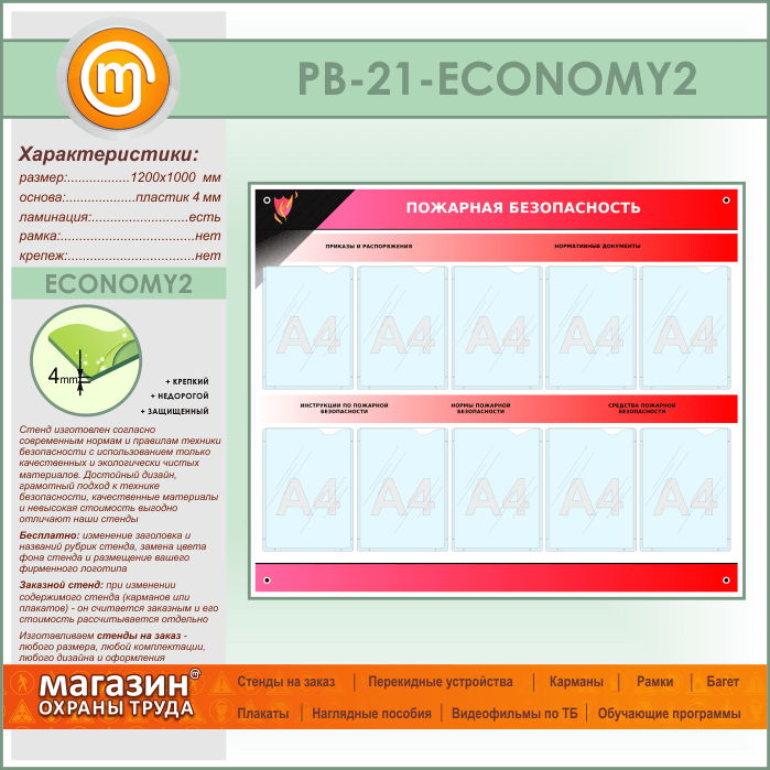 Стенд «Пожарная безопасность» с 10 карманами (PB-21-ECONOMY2) в Краснодаре купить