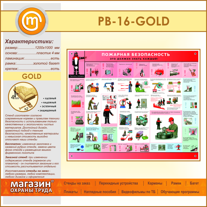 Стенд «Пожарная безопасность. Это должен знать каждый» (PB-16-GOLD) в Краснодаре купить
