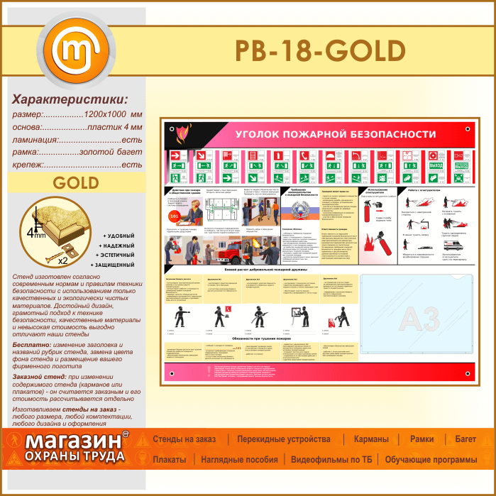 Стенд «Уголок пожарной безопасности» с карманом А3 формата (PB-18-GOLD) в Краснодаре купить