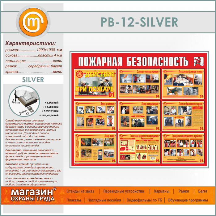 Стенд «Пожарная безопасность. Действия при пожаре» (PB-12-SILVER) в Краснодаре купить