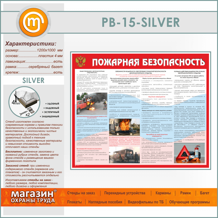 Стенд «Пожарная безопасность на автотранспорте» (PB-15-SILVER) в Краснодаре купить