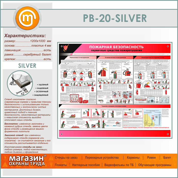 Стенд «Пожарная безопасность. Первичные средства пожаротушения» (PB-20-SILVER) в Краснодаре купить