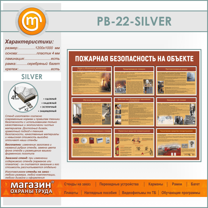 Стенд «Пожарная безопасность на объекте» (PB-22-SILVER) в Краснодаре купить