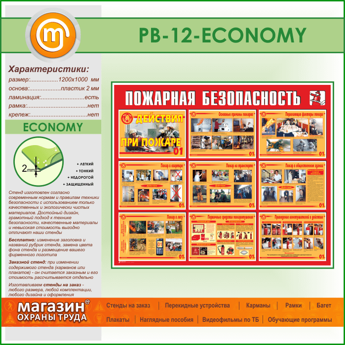 Стенд «Пожарная безопасность. Действия при пожаре» (PB-12-ECONOMY) в Краснодаре купить