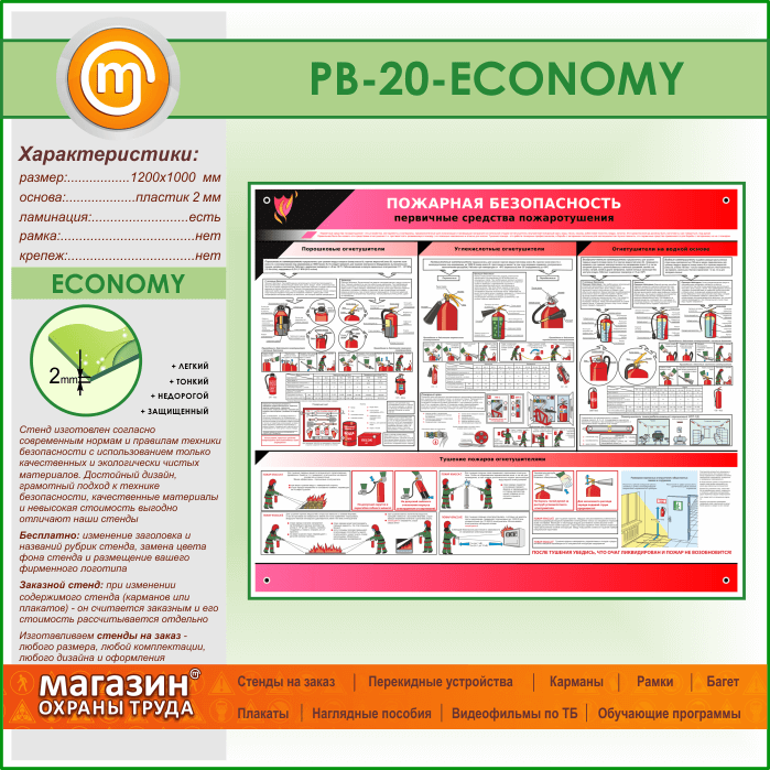 Стенд «Пожарная безопасность. Первичные средства пожаротушения» (PB-20-ECONOMY) в Краснодаре купить