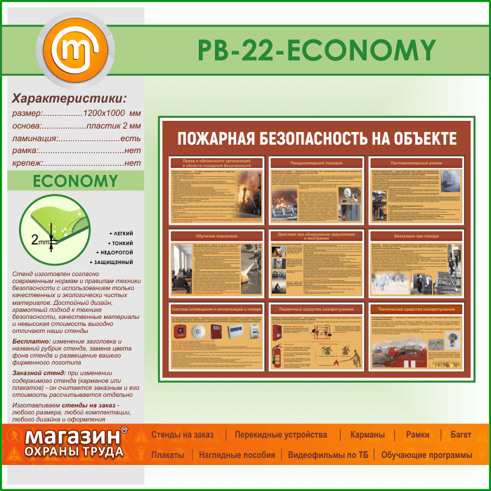 Стенд «Пожарная безопасность на объекте» (PB-22-ECONOMY) в Краснодаре купить