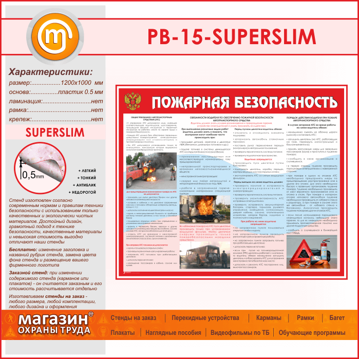 Стенд «Пожарная безопасность на автотранспорте» (PB-15-SUPERSLIM) в Краснодаре купить