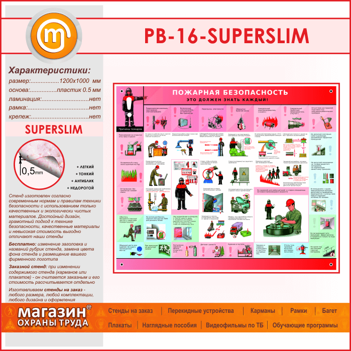 Стенд «Пожарная безопасность. Это должен знать каждый» (PB-16-SUPERSLIM) в Краснодаре купить