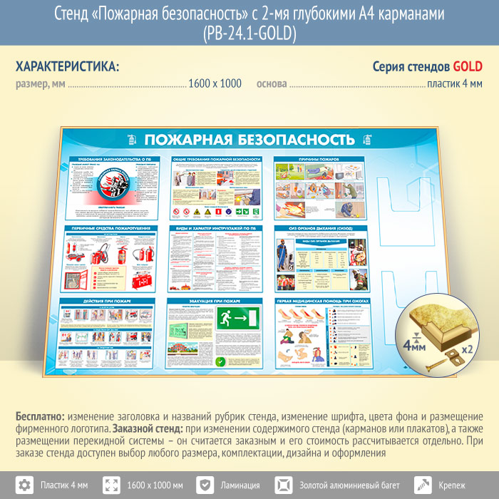 Стенд «Пожарная безопасность» с 2-мя глубокими А4 карманами (PB-24.1-GOLD) в Краснодаре купить