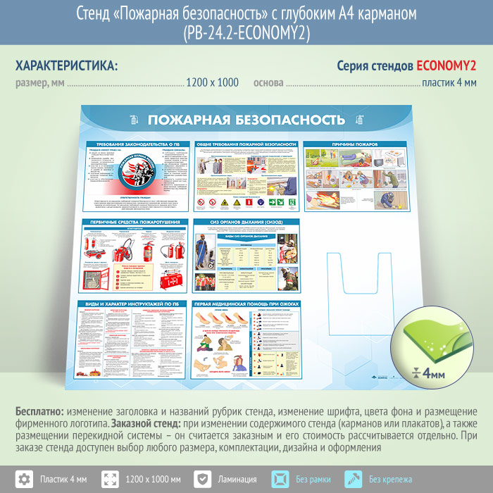 Стенд «Пожарная безопасность» с глубоким А4 карманом (PB-24.2-ECONOMY2) в Краснодаре купить
