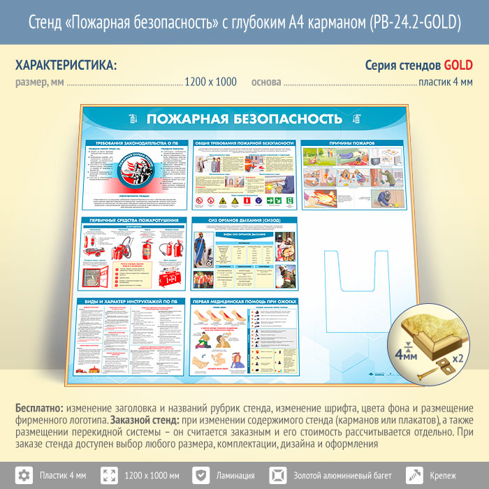 Стенд «Пожарная безопасность» с глубоким А4 карманом (PB-24.2-GOLD) в Краснодаре купить