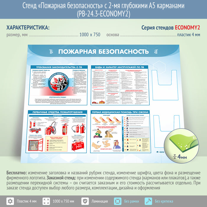 Стенд «Пожарная безопасность» с 2-мя глубокими А5 карманами (PB-24.3-ECONOMY2) в Краснодаре купить
