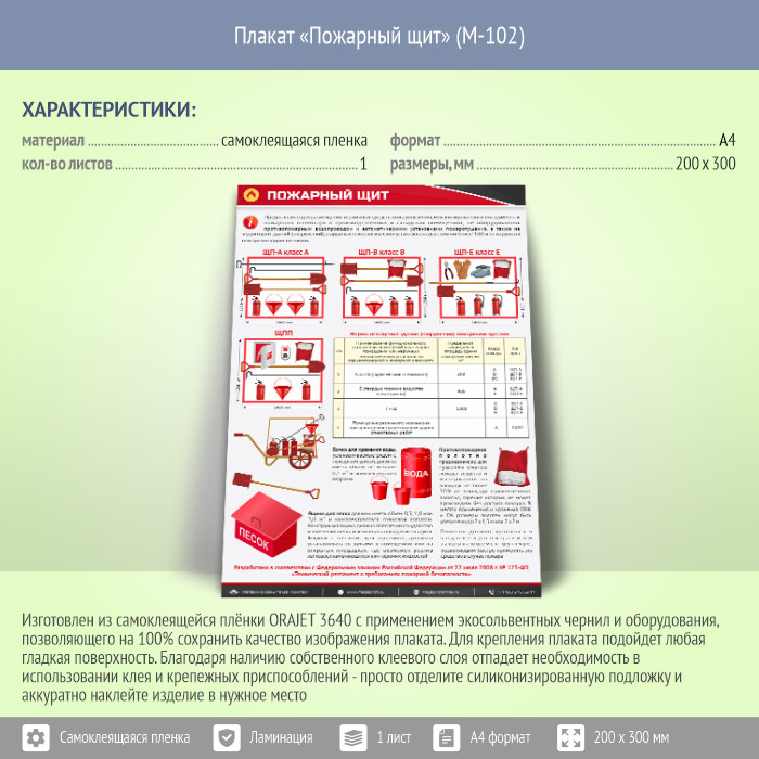 Плакат «Пожарный щит» (М-102, самоклеящаяся пленка, А4, 1 лист) в Краснодаре купить
