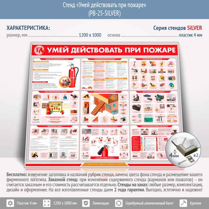 Стенд «Умей действовать при пожаре» (PB-25-SILVER) в Краснодаре купить
