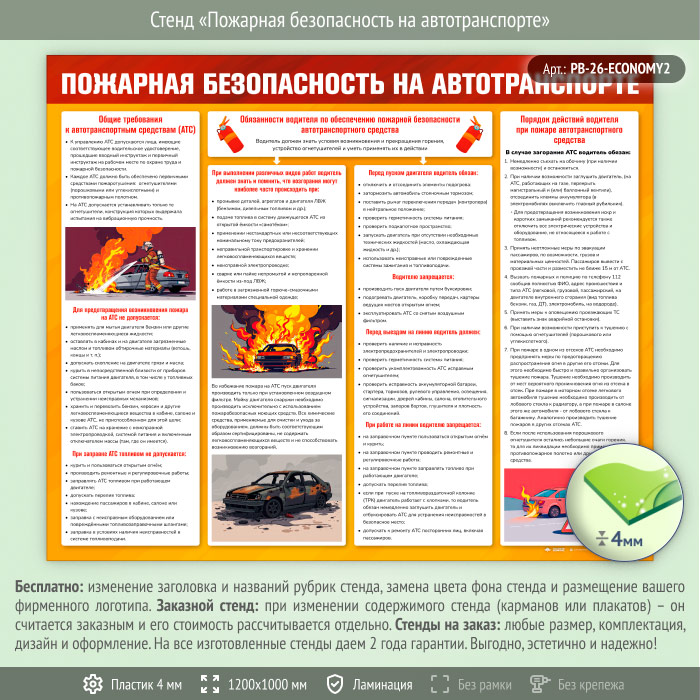 Стенд «Пожарная безопасность на автотранспорте» (PB-26-ECONOMY2) в Краснодаре купить
