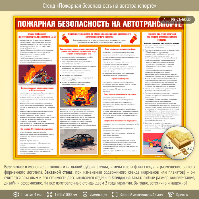 Стенд «Пожарная безопасность на автотранспорте» (PB-26-GOLD) в Краснодаре купить