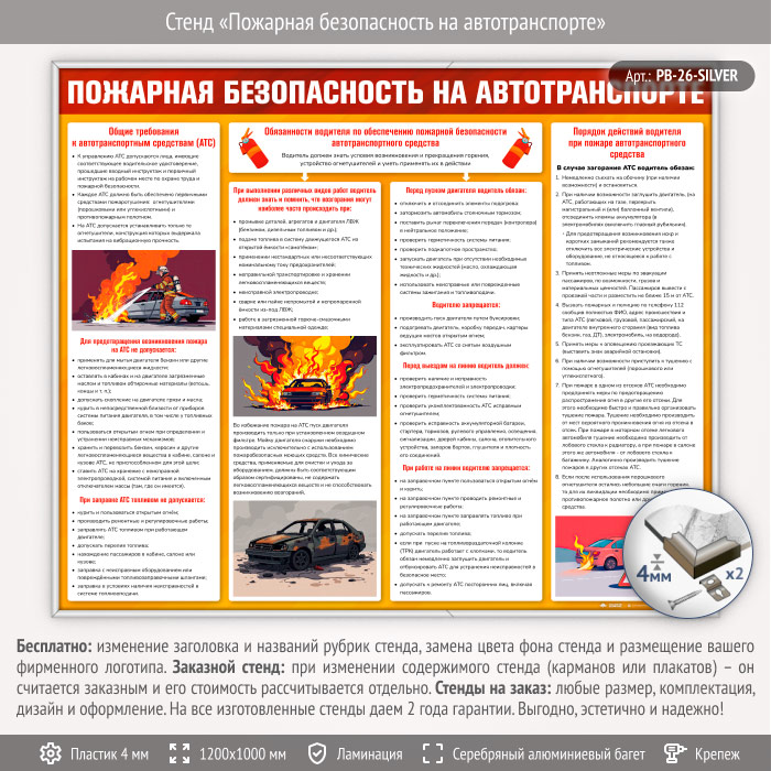 Стенд «Пожарная безопасность на автотранспорте» (PB-26-SILVER) в Краснодаре купить