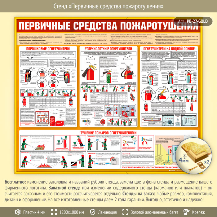 Стенд «Первичные средства пожаротушения» (PB-27-GOLD) в Краснодаре купить