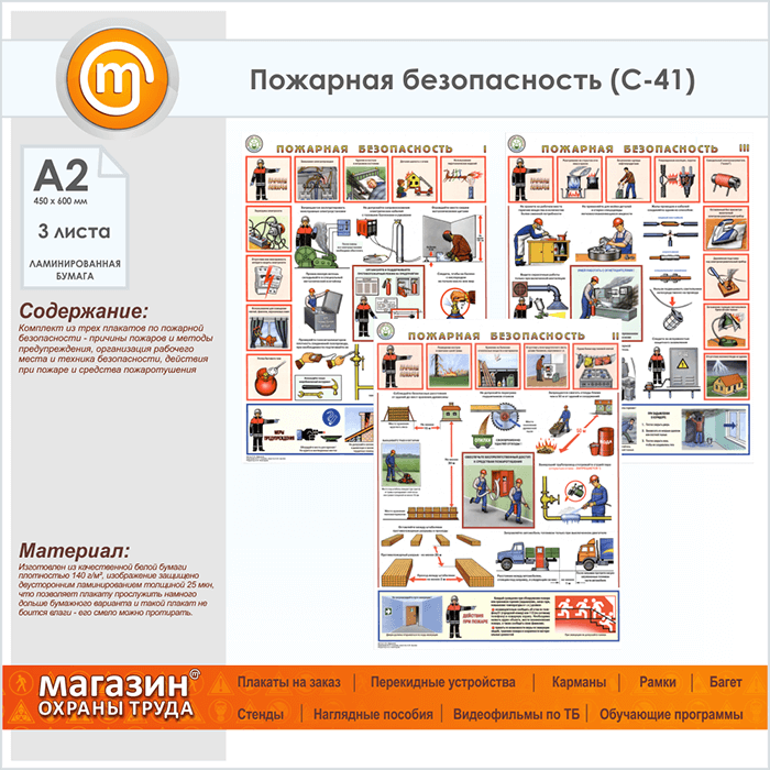 Плакаты «Пожарная безопасность» (С-41, ламинированная бумага, А2, 3 листа) в Краснодаре купить