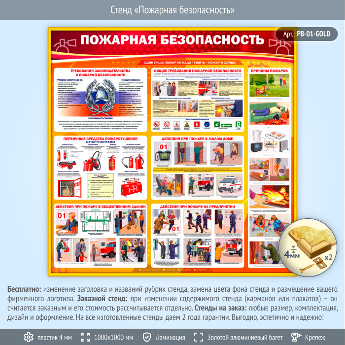 Стенд «Пожарная безопасность» (PB-01-GOLD) в Краснодаре купить