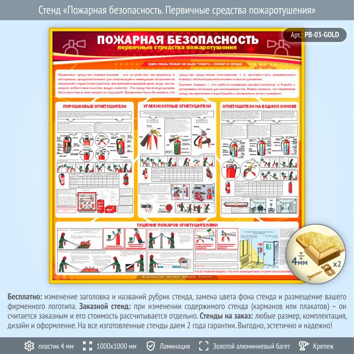 Стенд «Пожарная безопасность. Первичные средства пожаротушения» (PB-03-GOLD) в Краснодаре купить