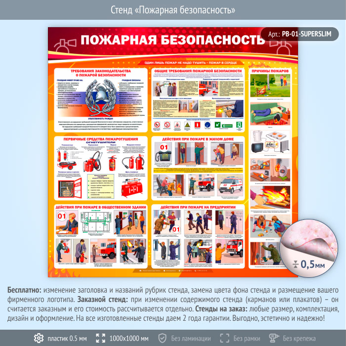 Стенд «Пожарная безопасность» (PB-01-SUPERSLIM) в Краснодаре купить