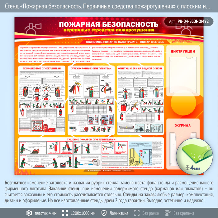 Стенд «Пожарная безопасность. Первичные средства пожаротушения» с плоским и объемным карманами (PB-04-ECONOMY2) в Краснодаре купить