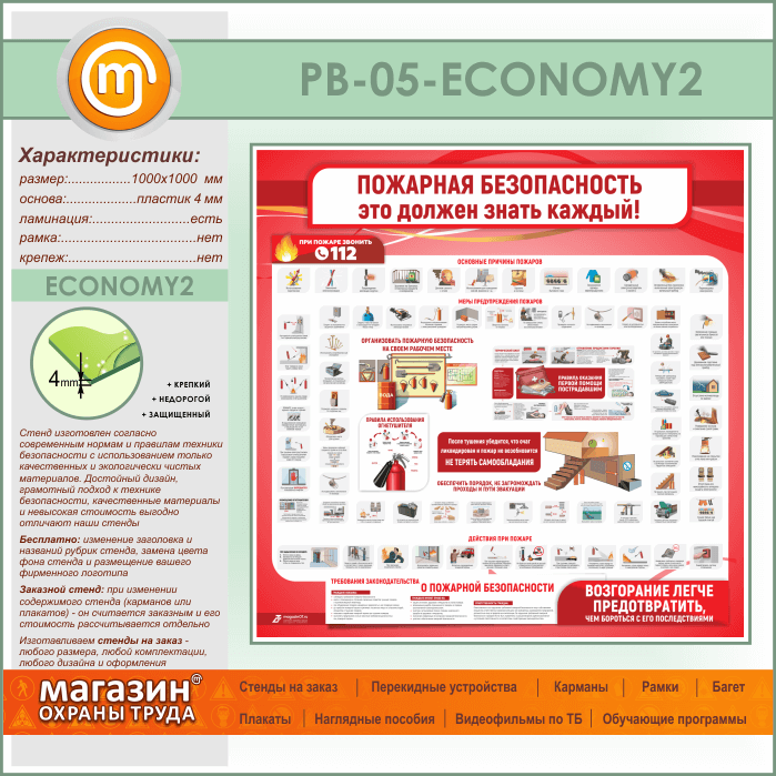 Стенд «Пожарная безопасность. Это должен знать каждый» (PB-05-ECONOMY2) в Краснодаре купить