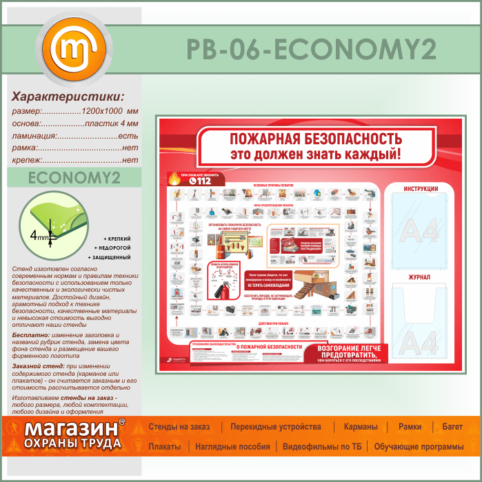 Стенд «Пожарная безопасность. Это должен знать каждый» с плоским и объемным карманами (PB-06-ECONOMY2) в Краснодаре купить