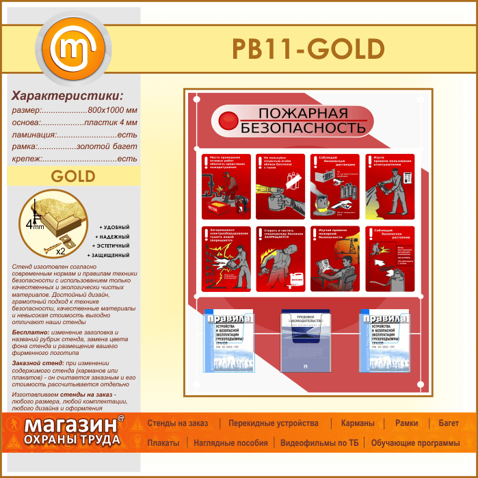Стенд «Стенд пожарная безопасность в строительстве» с 3 объемными карманами (PB-11-GOLD) в Краснодаре купить