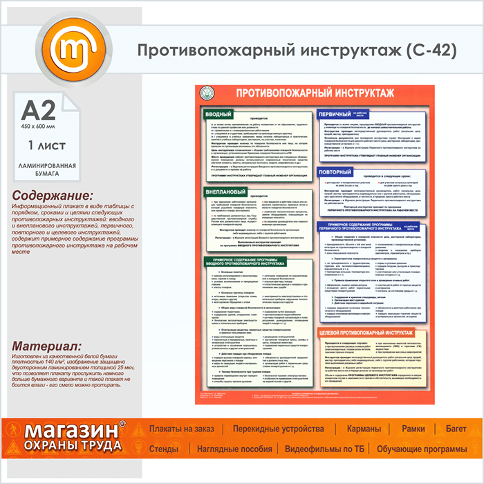 Плакат «Противопожарный инструктаж» (С-42, ламинированная бумага, А2, 1 лист) в Краснодаре купить