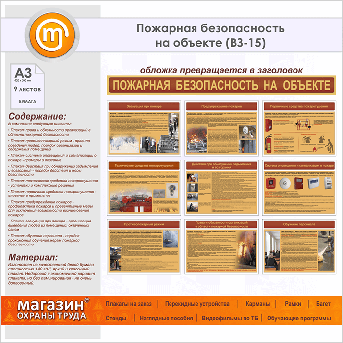Плакаты «Пожарная безопасность на объекте» (ВЗ-15, бумага, А3, 10 листов) в Краснодаре купить