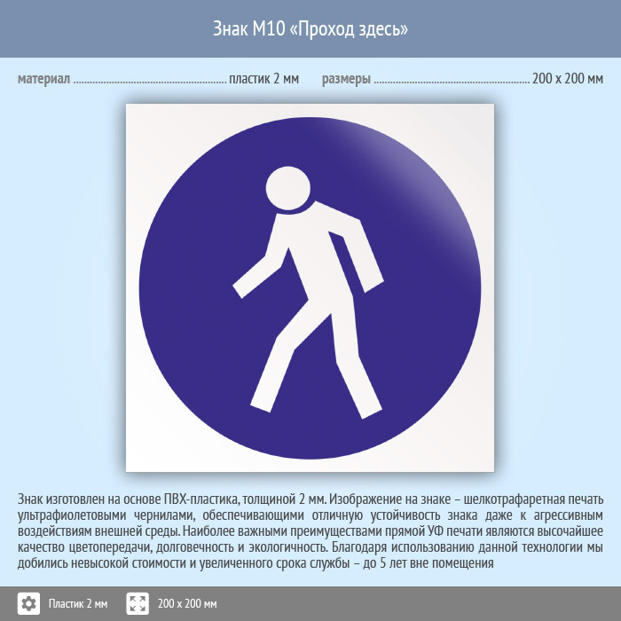 Знак M10 «Проход здесь» (пластик, 200х200 мм) в Краснодаре купить
