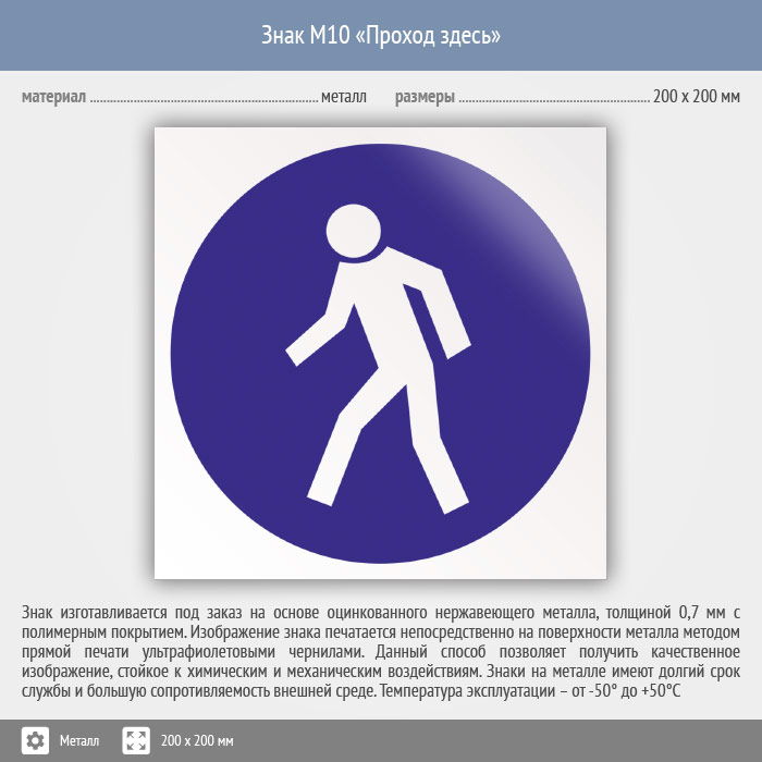 Знак M10 «Проход здесь» (металл, 200х200 мм) в Краснодаре купить