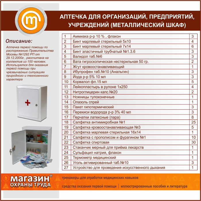Аптечка для организаций, предприятий и учреждений (на 100 человек) - металлический шкаф | Аптечка для организаций, предприятий и учреждений (на 100 человек) - металлический шкаф |