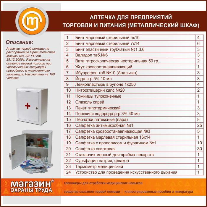 Аптечка для предприятий торговли и питания - (на 100 человек) - металлический шкаф в Краснодаре купить