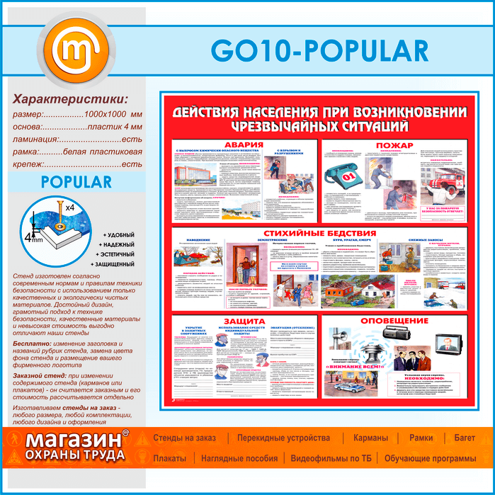 Стенд «Действия населения при возникновении чрезвычайных ситуаций» (GO-10-POPULAR)