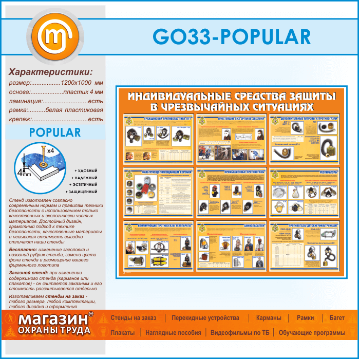 Стенд «Индивидуальные средства защиты в чрезвычайных ситуациях» (GO-33-POPULAR)