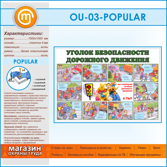 Стенд «Уголок безопасности дорожного движения» (OU-03-POPULAR)