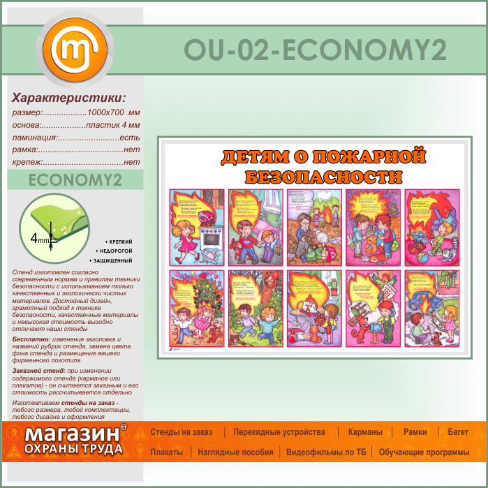 Стенд «Детям о пожарной безопасности» (OU-02-ECONOMY2) в Краснодаре купить